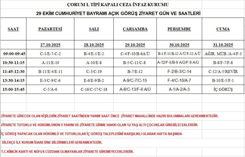 29 Ekim Cumhuriyet Bayramı Açık Görüş Ziyaret Gün ve Saatleri